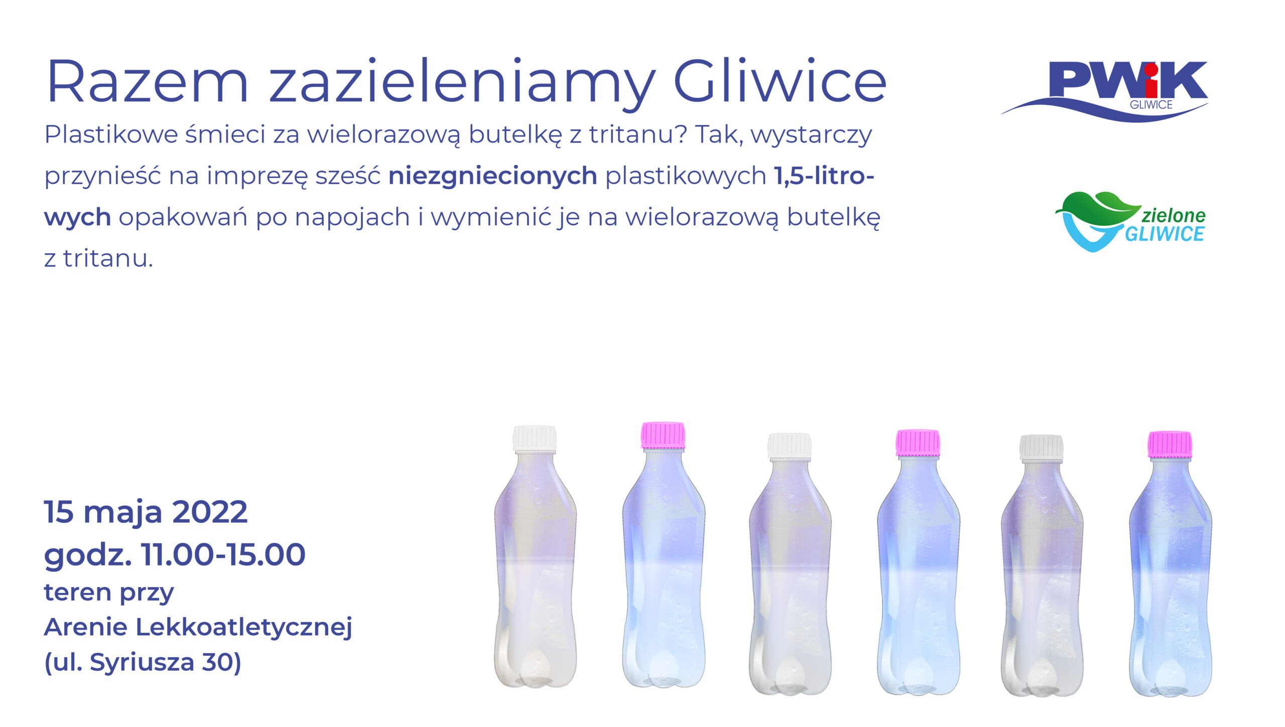 Łap butelkę – akcja wymiany plastikowych śmieci na wielorazową butelkę z tritanu. Dołóż małą cegiełkę, by ograniczyć używanie plastiku. Przynieś sześć, niezgniecionych, plastikowych 1,5 l. opakowań po napojach i wymień je na wielorazową praktyczną butelkę. Z zebranych butelek zbudujemy jeden m³ wody! Spotykamy się 15 maja 2022 r. w godzinach 11.00 – 15.00 przy Arenie Lekkoatletycznej w Gliwicach przy ul. Syriusza 30, gdzie odbędzie się […]