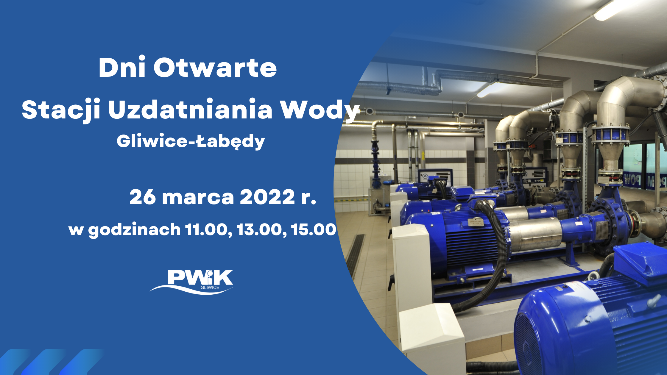 W ramach obchodów Światowych Dni Wody 26 marca 2022 r. zapraszamy do zwiedzania Stacji Uzdatniania Wody. To wyjątkowa okazja, by poznać proces ujmowania i uzdatniania wody, zobaczyć nowoczesne urządzenia, poznać pracę ludzi odpowiedzialnych za dostawę czystej, zdrowej wody do naszych domów.